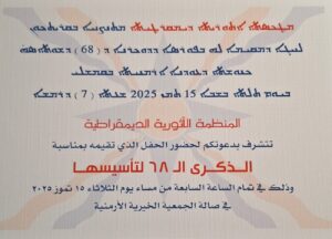بدعوة رسمية من المنظمة الآثورية الديمقراطية، شارك وفد من جبهة كوردستان سوريا في الاحتفال الذي أُقيم بمناسبة الذكرى الثامنة والستين لتأسيس المنظمة، وذلك يوم الثلاثاء 15 تموز 2025 في مدينة قامشلو.