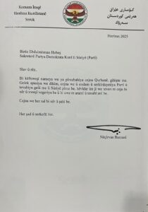 Serokê Herêma Kurdistanê Nêçîrvan Barzanî nameyek bersivê ji Sekreterê Partiya Demokrat a Kurd li Sûriyê (El-Partî) Ebdilrehman Hebeş re şand bi boneya cejna Qurbanê, û di wê peyamê de sipasî û razîbûna xwe ji bo pîrozbahiyê de